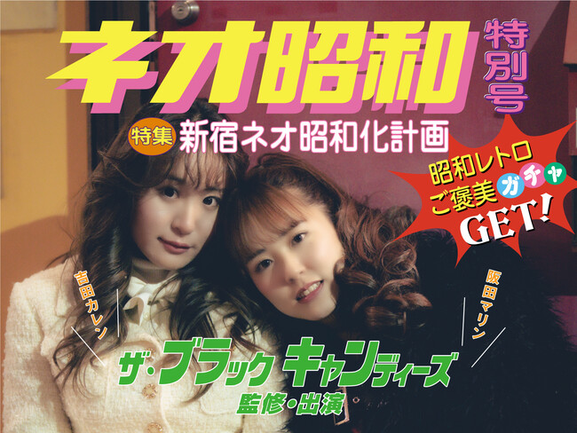 株式会社膝栗毛(代表取締役社長:米田 大典)が運営する、スマートフォン向け歩き旅アプリ『膝栗毛 | HIZAKURIGE』(以下本サービス)は、昭和カルチャーを愛するZ世代の人気インフルエンサー「阪田マリン」と「吉田カレン」の2人で活動している「ザ・ブラックキャンディーズ」が掲げる「ネオ昭和歌謡プロジェクト」とコラボレーションし、“ネオ昭和“をコンセプトにしたまち歩き「新宿ネオ昭和化計画」を開始いたします