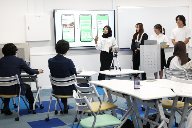 マーケティングやアントレプレナーシップの専門家である講師から説明を受け、学生たちはそれぞれの学科の特性を活かし、自由な発想で新しいビジネスプランを練り上げました。東京予選会では、それぞれの学科の予選を勝ち抜いた5チームが発表。普段の授業とは異なり、審査員や他学科の学生の前でプレゼンテーションを行う緊張感のある瞬間となりました。