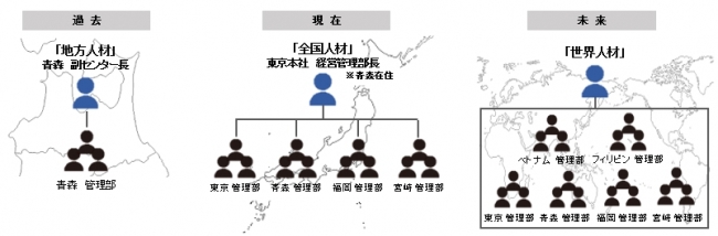 当社は東京本社と地方拠点の業務が異なることから、管理部門は拠点ごとに設置していますが、拠点ごとの管理体制が複雑化していました。また地方拠点でのマネジメント人数は限られており、その人数を増やすことで地方拠点にいながらもキャリアアップを図ることが可能となりました。