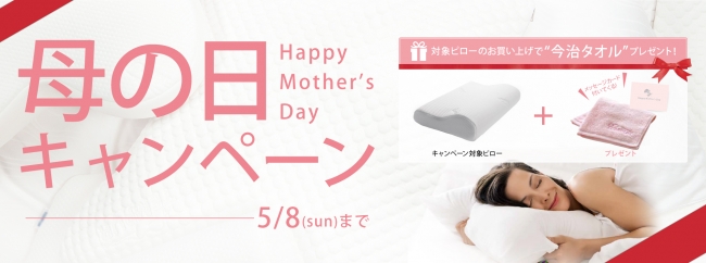 今年の「テンピュール(R) 母の日キャンペーン」は、ご購入いただいたキャンペーン対象の“まくら”に、テンピュール(R)オリジナル今治タオル(メッセージカード付き)を添えてお届けします。