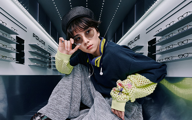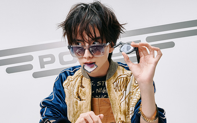 そんな彼が今回のビジュアルで表現するのは4スタイルです。リラックスしたムードのビジュアルではラウンドシェイプのフロントにチタン製のテンプルを組み合わせたオプティカルフレームを着用。涼しげなクリアブルーのサングラスを着用したビジュアルでは、アイウェアが好きすぎて食べてしまう!という大胆でユニークなストーリーになっています。サングラス2種、オプティカル2種を着用したビジュアルと動画はPOLICEオフィシャルウェブサイト内特設ページ、またオフィシャルYouTubeなどで公開中。6月1日より全国のPOLICE取扱店でも、店頭ディスプレイなどでご覧いただけますので、是非足をお運びください。