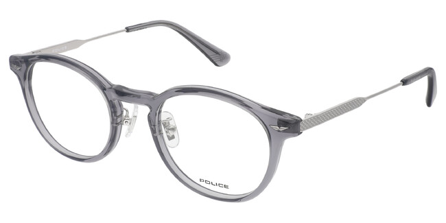クリアグレーのアセテートフロントとライトグレーのチタン製テンプルを組み合わせたオプティカルフレーム。細身のラウンドシェイプで女性にもおすすめです。