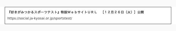 また、本年11月、JA共済連が小中学生400人を対象に実施した運動に関する意識調査では、「運動やスポーツで人と比べられるのが嫌だ」という回答が過半数を占める反面、「自分が得意な運動や好きになれそうな競技がわかればやってみたい」という意見が約9割に上るという結果を得ることができました。
