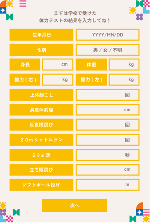 学校の体力測定の結果を入力し、 「“好き”になるかもしれないスポーツ」をWeb上で診断します。