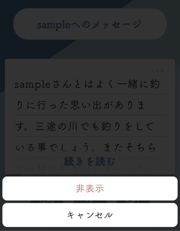 故人様のFacebookなどに追悼のメッセージを書かれる方もいらっしゃいますが、実名が出るため投稿を躊躇う方もいらっしゃいます。葬想式は匿名のため、心理的なハードルを下げた設計になっています。万一、好ましくない投稿があった場合、主催者の権限で非表示にすることができます。非表示にされた投稿は、投稿者本人は引き続き閲覧でき、その他の参列者には表示されません。