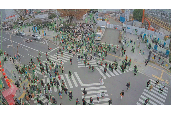 数多くの歩行者がビジョンに目を止め、またカメラ撮影をしていますが、従来は過去の調査に基づく周辺滞在者数の把握(周辺歩行者数:19万人/平日、23万人/休日)にとどまり、リアルタイムな視聴者数を把握することは不可能でした。