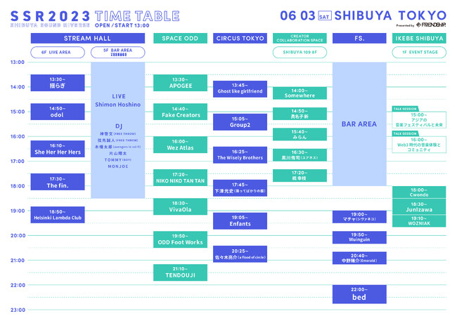 2023年6月3日(土) at 渋谷STREAM HALL / SPACE ODD / CIRCUS TOKYO / IKEBE SHIBUYA / Creator Collaboration Space / FS.