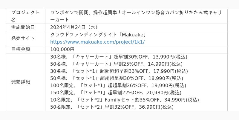 重さ3.6kg、耐荷重150kg!ALL in 1カバン折りたたみ式キャリーカートがMakuakeにてクラウドファンディングを開始いたしました。募集は2024年4月24日(水)からスタートします。