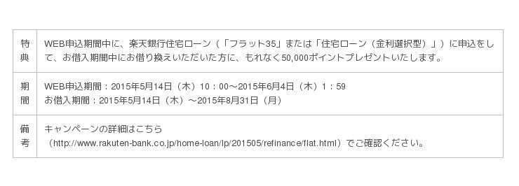 【楽天銀行住宅ローンへのお借り換えで50,000ポイントをプレゼント】