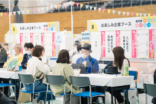 3回目の開催となる2023年は、京都・滋賀の3日程3会場で開催いたします。会場では地方の優良企業が計150社参加しているので、新たな出会いにより会社の魅力を発見できるチャンスが盛りだくさんです。どの企業ブースに行けばよいかと迷う参加者には、ナビゲーターがあなたへのおすすめ企業を案内します。20分交代制となっているため、予定に合わせて好きな時間から参加していただけるので、気軽にお越しいただけます。