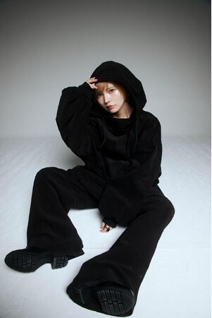 「益若つばさです。今回世界的なブランドBLVCK PARISさんとコラボでお洋服を作らせていただきました。オールブラックで、家でも外でもワンマイルウェアとして使える着心地の良いユニセックスアイテムを作りました。
