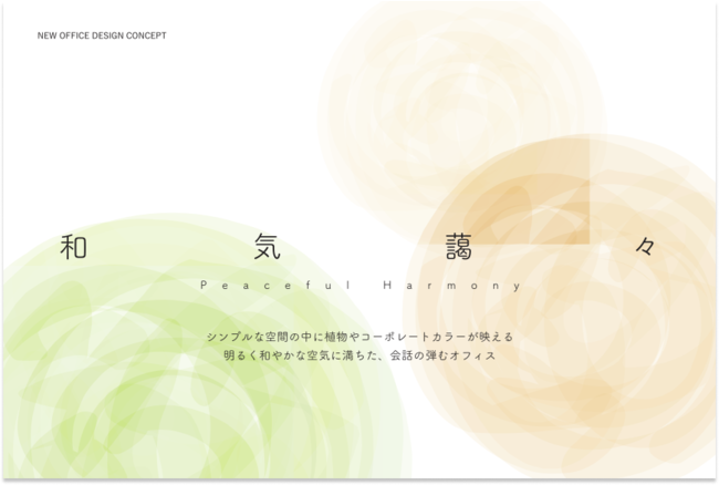 今回のオフィスのデザインコンセプトは『和気藹々(Peaceful Harmony)』。