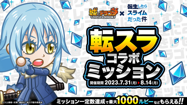 株式会社アソビズム(本社:東京都千代田区、代表取締役:大手智之)は、App Store・Google Playにて好評配信中の『城とドラゴン』で、TVアニメ『転生したらスライムだった件』との初のコラボイベントを、2023年7月31日(月)より開催いたします