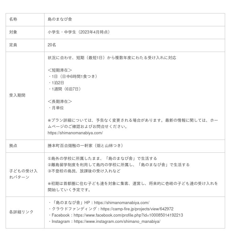 ・全寮制オルタナティブスクール「島のまなび舎」HP