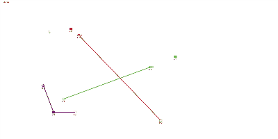 四角(塗りつぶし):発送元、四角(空欄):配送先、丸:トラック・バイク