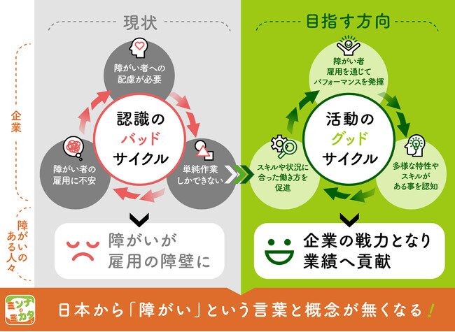 ミンナのミカタHDは、全国の就労支援施設と企業をマッチングするプラットフォームを運営する企業です。ITデータ作成や倉庫業務等についてBPOサービスを求める企業と、仕事の受注先を探す就労支援施設をマッチングすることで、障がいを持つ人々が企業現場で活躍する機会を創る仕組みを提供しています。これを通じて、企業の障がい者に対する認識変容を起こし、社会的な偏見を解消していくことを目指しています。