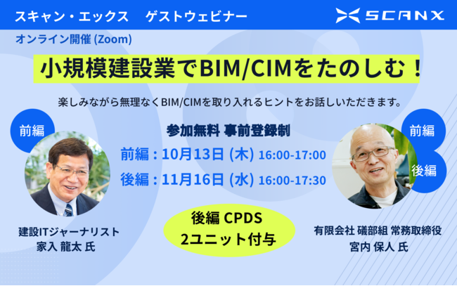 2)2022年10月13日(木)16:00〜17:00 小規模建設業でBIM/CIMをたのしむ!前編 <後日視聴可能>