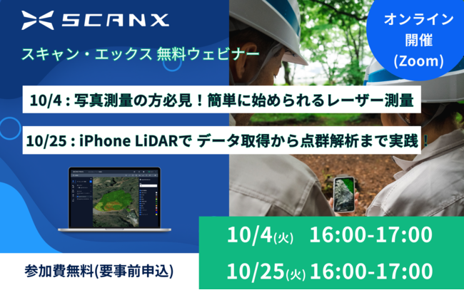 1)2022年10月4日(火)16:00〜17:00 写真測量から簡単に始められるレーザー測量 <後日視聴可能>