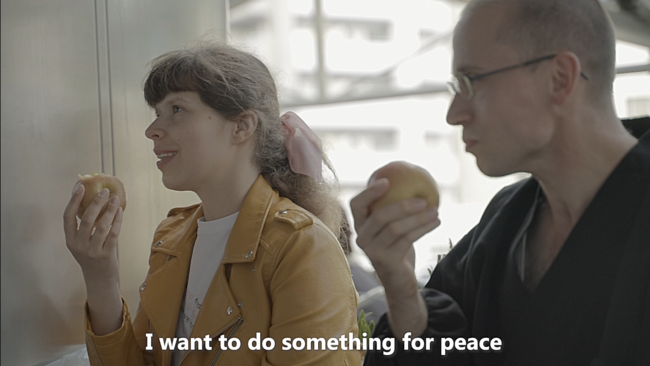 また、当プロジェクトにはウクライナ人ユリヤ(画家)も参加しており、ロシア人の参加者ジシン(僧侶)を思いやり、ユリヤから積極的に気遣いをしていることが印象的でした。2人がリンゴを分け合っていたシーンは、世界中が望む平和の姿そのものでした。