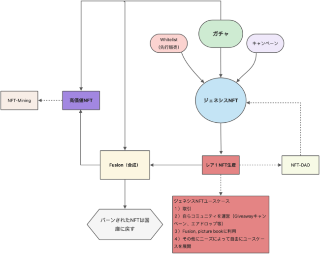 特にCOG全体の枚数は決められており、合成機能でバーンされたNFTは再び「COG在庫」に戻る仕組みとなっている。