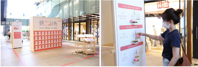 「健恋診断」は、視力測定や体重測定などをモチーフとした、3つのコースを受診いただくことで、自分の「恋愛価値観」を知ることができる体験型展示です。開催期間の10日間で、4,889名の方に「健恋診断」へご来場頂きました。また、本イベントでは、「恋愛コミュニケーション診断」と「恋愛パーソナリティ診断」の2種類の診断を体験いただきました。