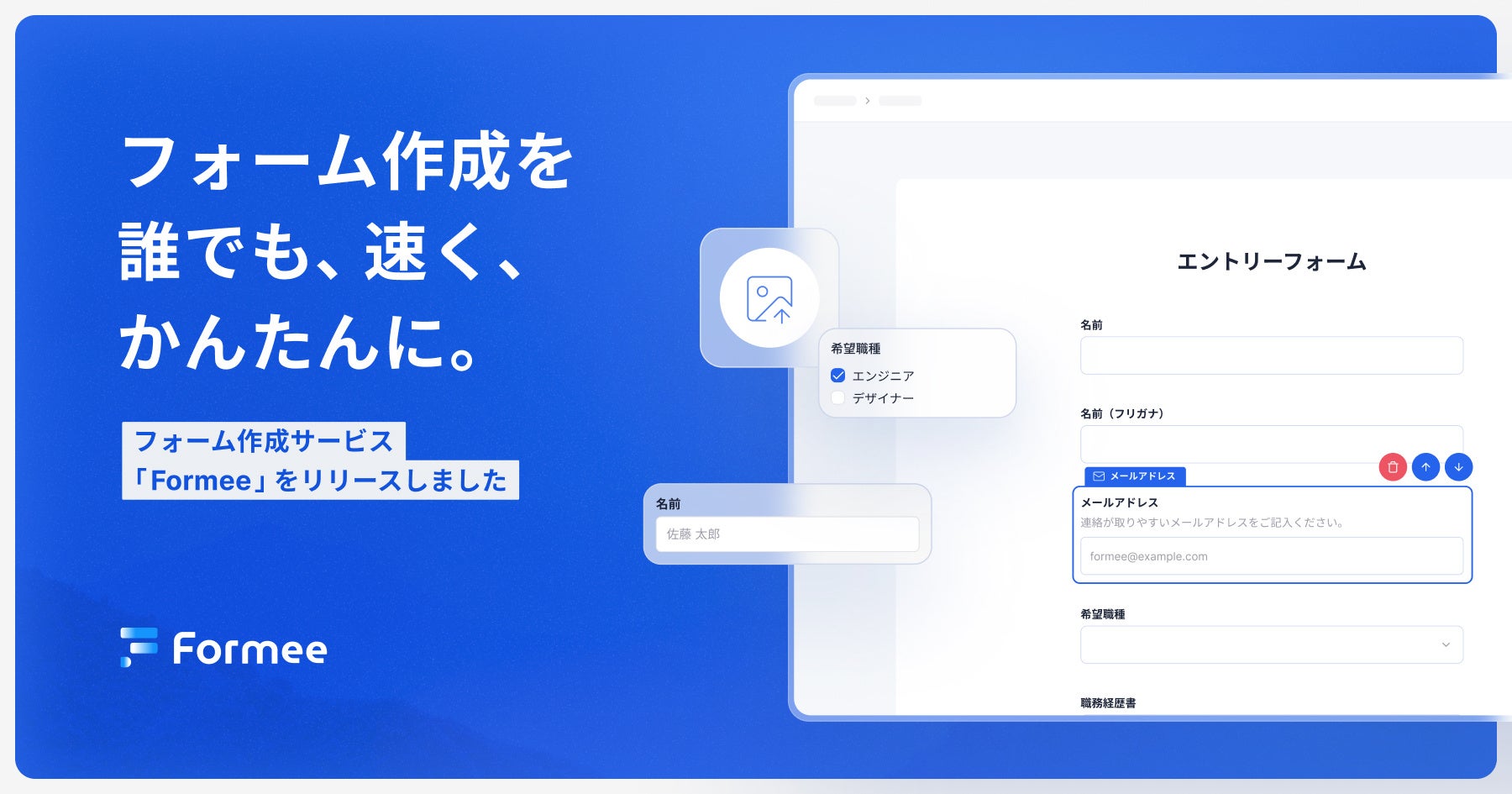 株式会社Rabee(本社:東京都渋谷区、代表取締役:上松勇喜、以下「Rabee」)は、フォームの作成・公開・回答管理を速く、かんたんに行えるフォーム作成サービス「Formee(フォーミー)」をリリースしました。