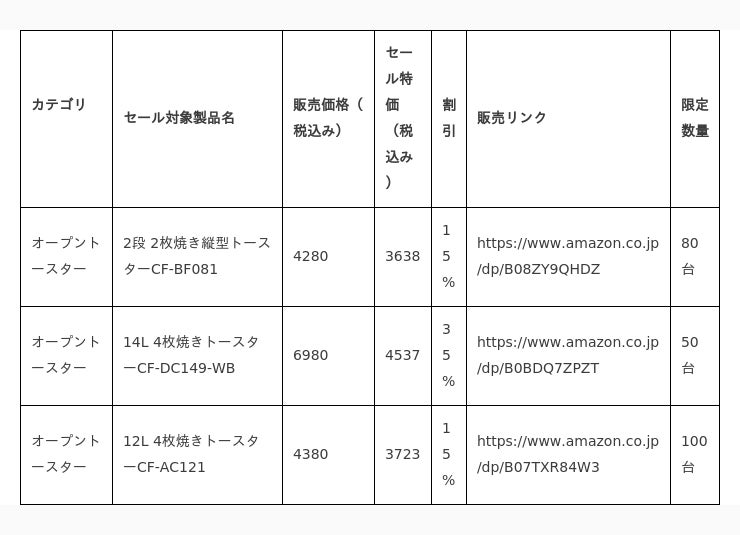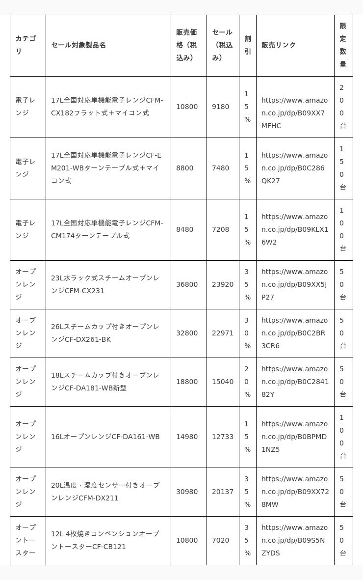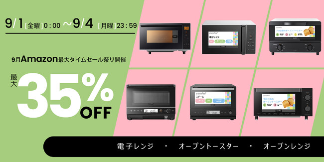 2023年9月1日から9月4日まで、アマゾンでCOMFEE’人気の電子レンジ・オープンレンジ・トースターの大特価サービスを開催します!最大35%オフで、4万円ほどのオープンレンジはわずか2万円ぐらいでお手入れられます!数量限定なので、ぜひ見逃さないでください!