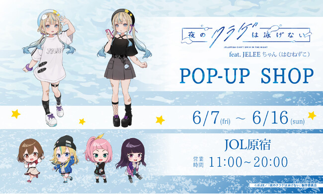 異業種の会社間と作品を繋ぐプロデュース会社である株式会社アイライツ(本社:東京都中央区、代表取締役:石川 哲也)は、4月から放送中のオリジナルテレビアニメ『夜のクラゲは泳げない』のPOP-UP SHOPの開催を決定いたしました。2024年6月7日(金)〜6月16日(日)までの10日間、原宿にある商業施設・JOL原宿にて開催します。