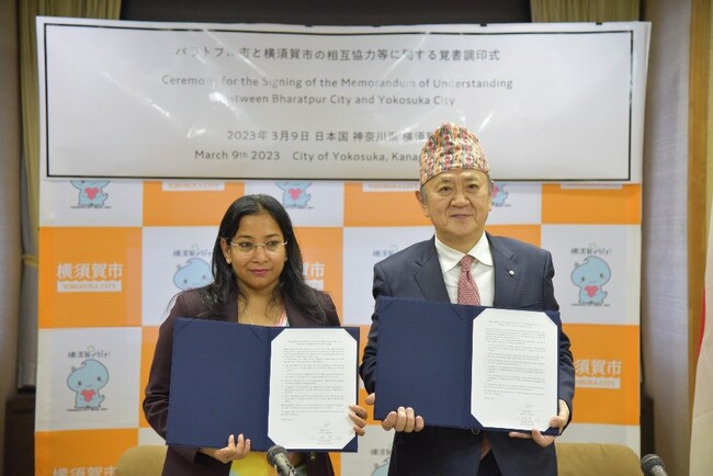 2023 年3月9日覚書延長の締結時 左 バラトプル市長、右 横須賀市長