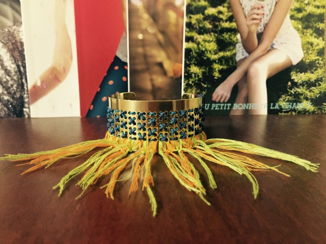 「SUNSHINE」をテーマにした今月のMy Little Boxオリジナルアイテム一つ目は、これからの季節に大活躍間違いなしのゴールドのバングルと2色のブルーのストリングのセット。作って、纏って、なんと自分の好きなデザインをカスタマイズして2倍楽しめるアイテムです!作り方は、「My Little World」を参考に自分なりのデザインを楽しんでみて下さいね。