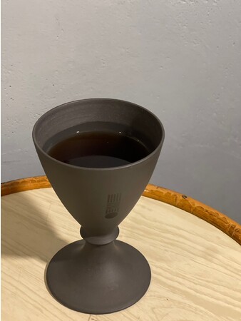 生姜と日本のBlack tea(和紅茶)を合わせたホッと暖まるドリンク。深みのある和紅茶の香りに生姜のスパイシーさをアクセントにしています。初めはノンアルで飲みながらお好みでお酒を入れても飲めるのが特徴。アマレットの甘さとほんのり香ってくるハーブの香りが一気にエレガントさを演出します。5450 THE PRODUCTSの黒いグラスで全体的に重めのテイストで暗さを表現しながら、黒の中にいても変わらない芯!コンセプトとなっています。