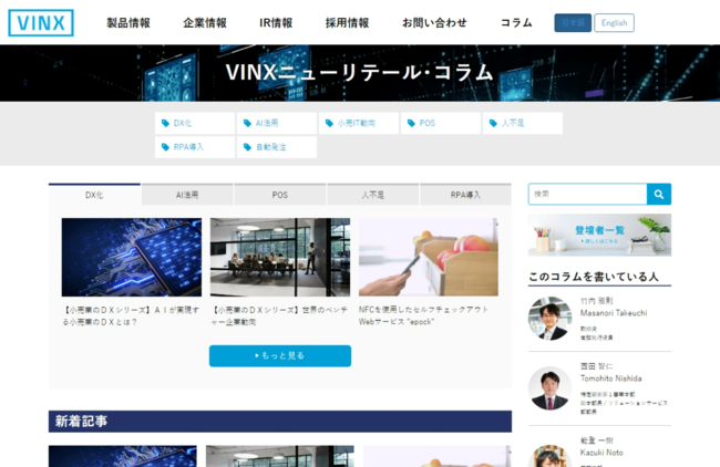 株式会社ヴィンクス(本社:大阪府大阪市、代表取締役 社長執行役員:今城 浩一、以下 ヴィンクス)は、ホームページ上(https://www.vinx.co.jp)に「VINXニューリテール・コラム」ページを開設したことをお知らせいたします。