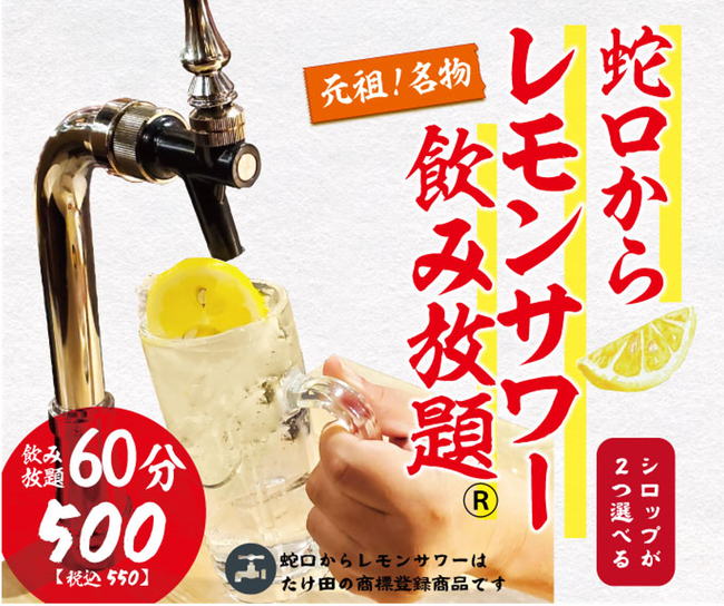 オープン記念として「蛇口レモンサワー」を2月末まで半額でご提供いたします。