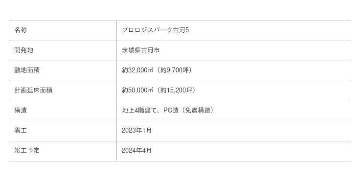 物流不動産の所有・運営・開発のリーディング・グローバル企業であるプロロジス(日本本社:東京都千代田区丸の内、代表取締役会長 兼 CEO:山田 御酒)は、茨城県古河市において、既存顧客の専用(BTS型)物流施設「プロロジスパーク古河5」の起工式を執り行ったことを発表しました。