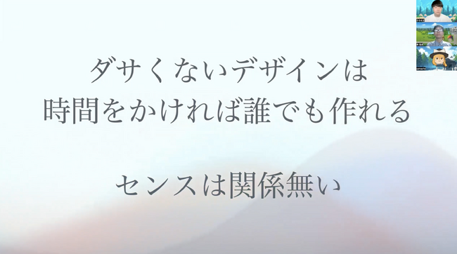 「非デザイナー向けデザイン講座」を題材に”ダサい”を卒業するマインドセットを行いました。