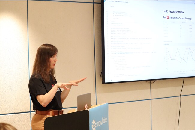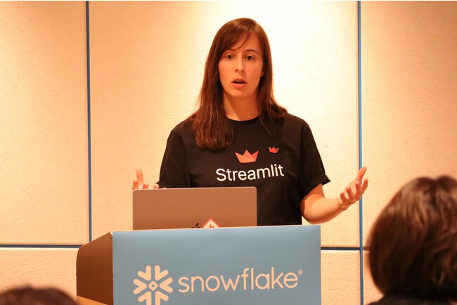 データクラウドを提供するSnowflake合同会社(所在地:東京都渋谷区、社長執行役員:東條 英俊)は12月19日、Streamlit技術に関する報道機関向け説明会を都内で開催しました。当日はStreamlit Co-Fonder & COO Amanda Kelly(アマンダ・ケリー)が登壇し、開発の歩みや具体的な機能について、デモンストレーションを交えながら解説しました。