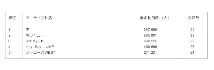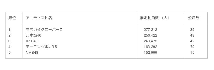 【2015年 ライブ動員ランキング(総合)1位〜30位】