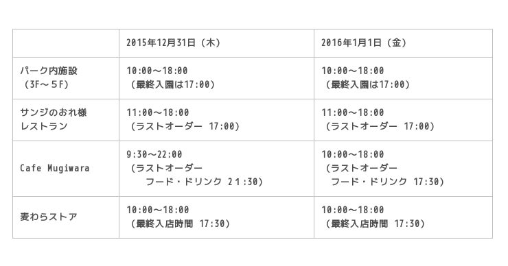 ※12/31と1/1は営業時間が以下に変更になりますのでご了承下さい。
