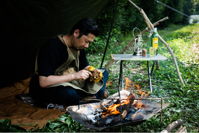 ソロキャンプの魅力、それは自分の時間が大切にできること。自然の中だからこそ得られる研ぎ澄まされる感性を大切にして貰いたい。大工道具の町、兵庫県三木市に籍を置く、私たちだからこそできるご提案として「木彫り」に着目。