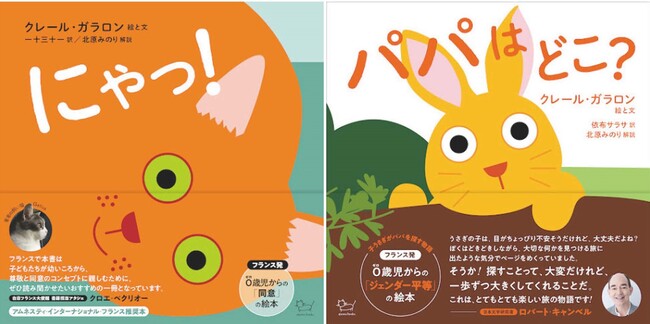 シスターフッドの出版社アジュマブックス(所在地:東京都文京区、取締役:北原みのり、正式社名:有限会社アジュマ)は、フランスの絵本作家クレール・ガラロンさんによる「同意」が学べる絵本『にゃっ!』と「ジェンダー平等」が学べる絵本『パパはどこ?』を2022年11月10日(木)に全国の書店・ネット書店等で発売いたします。