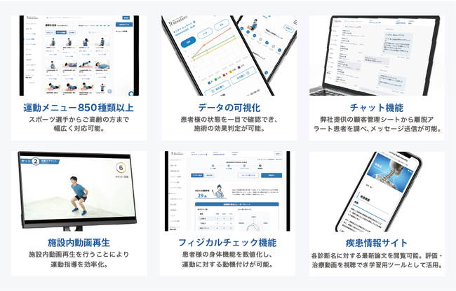 当社は理学療法士の近藤を始めとした資格保有者 (理学療法士/作業療法士/柔道整復師など)のみならず、大手・ベンチャー企業出身のエンジニア、デザイナー、コンサルタントなど様々なバックグラウンドを持ち合わせたメンバーが集まっており、全員が共創の精神の元に、取引先、企業、業界団体等と共により良い業界を創造していくために一丸となって取り組んでいます。現在は運動療法をベースとしたセラピストと患者間のコミュニケーションサービスのSaaS事業を展開しております。同事業は2019年の5月に利用者向け機能をリリースし、オンラインで利用者とのコミュニケーションや接点を強化したいというニーズの高まりから、2022年1月時点で500以上の施設(有料契約施設のみ)にご利用いただいております。