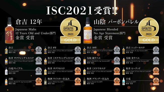 倉吉蒸溜所(所在地:鳥取県倉吉市)は、2021年7月8日に2021年度 International Spirits Challenge において以下の賞を受賞致しました。