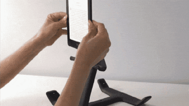 スマホ、タブレットを引っ掛けて固定するだけでOK。とてもシンプルです。