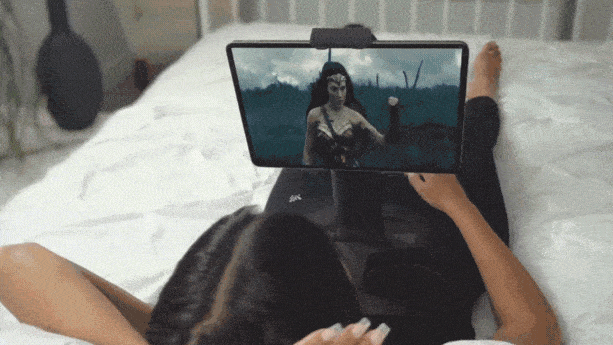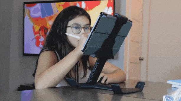 iPad Proを胸、お腹に乗せても倒れない安定感。寝っ転がっての使用も安心です。