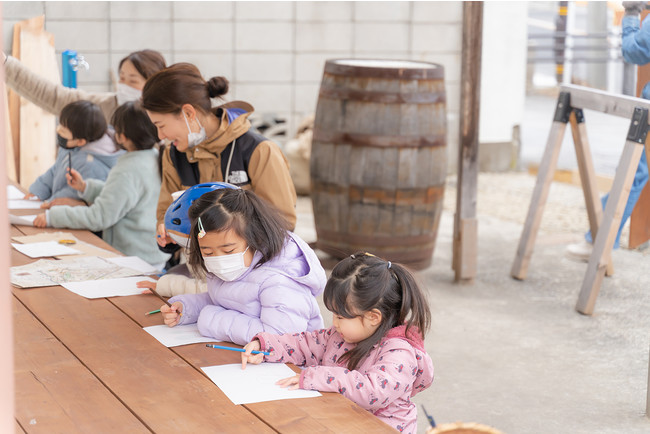 地元の子どもたちからは任意で提出してもらった絵のほか、壁面地図の制作当日ワークショップ形式で絵を追加していただきました。