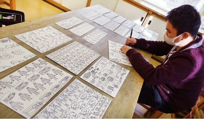 使用するイラストレーションの原画は足立区の社会福祉法人あだちの里「竹の塚ひまわり園」生活介護部門約40名のみなさんに加え、地元の子どもたち。