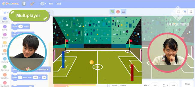 プログミーは、複数人で同時に編集できる共同編集機能を業界で初めて搭載したビジュアルプログラミングアプリです。複数人でリアルタイムにプログラミングを行い、完成したプログラムやゲームは皆で遊ぶこともできます。画面上でブロックを組み合わせるようにしてプログラミングを行うため、特定の言語に縛られず、プログラミングの基本となる考え方を楽しく学べます。