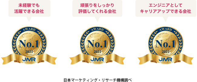 ブレイバンステクノロジーズは、「未経験でも活躍できる会社 No.1」「頑張りをしっかり評価してくれる会社No.1」「エンジニアとしてキャリアアップできる会社No.1」の採用に関する3部門で第一位に選ばれました。