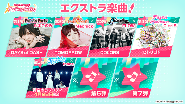 「エクストラ楽曲」は、アーティストの楽曲を、「ガルパ」のメンバーとアーティストが一緒に歌唱する楽曲コラボ企画です。