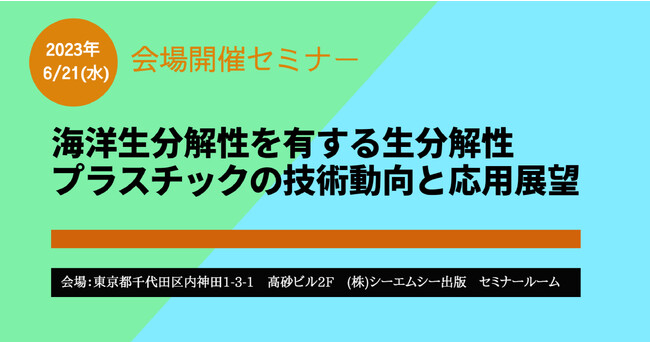 化学・電子工学などの技術・市場動向レポート発行やセミナー開催を行う、株式会社シーエムシー出版(本社:東京都千代田区、代表:辻賢司)は、6月21日(水)13:20〜16:40に「海洋生分解性を有する生分解性プラスチックの技術動向と応用展望」セミナーを開催します。